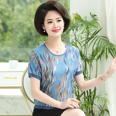 Middle-aged women ice silk T-shirt mother short sleeve middle-aged and elderly chiffon summer loose grandma top new