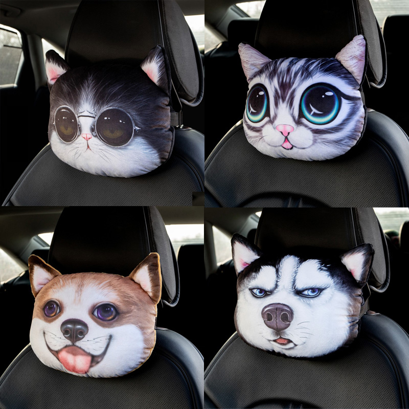 New 3D stereo cartoon seat plush head pillow glasses cat Hasky network red car neck pillow cute