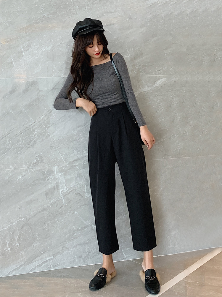 Cross-thighs coarse pear body pants large size female fat mm rod pants nine-point low-thin