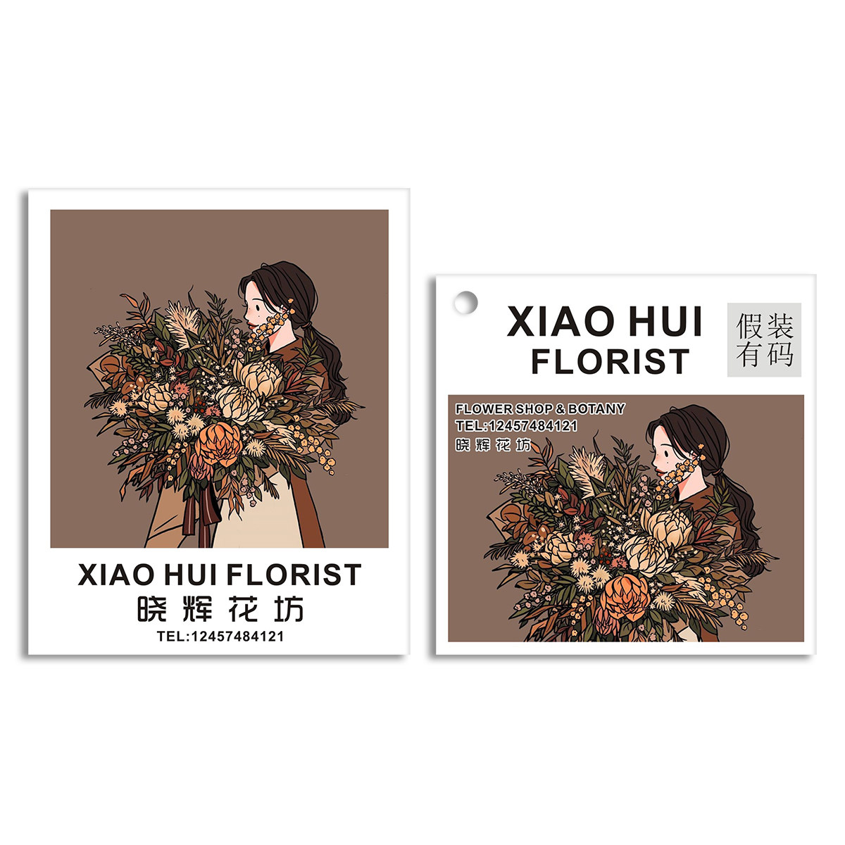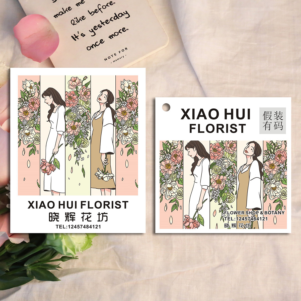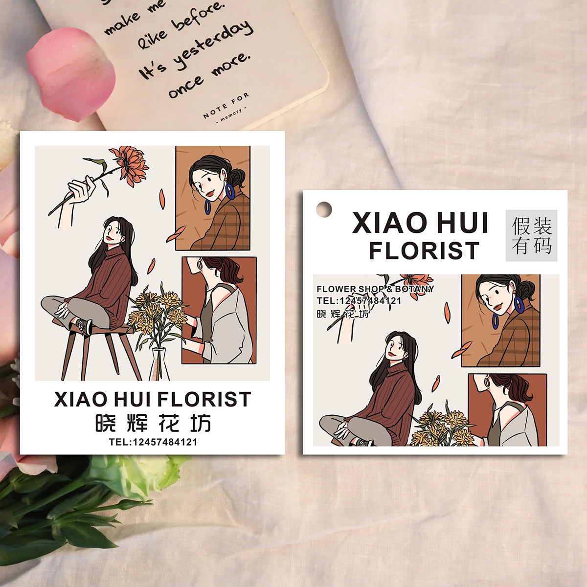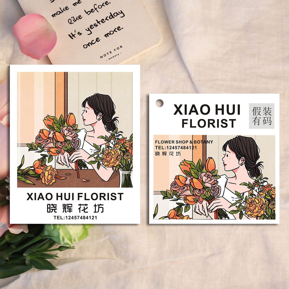 2021 Korean-style illustration flower shop greeting card custom bouquet tag handwritten blessing QR code logo small card