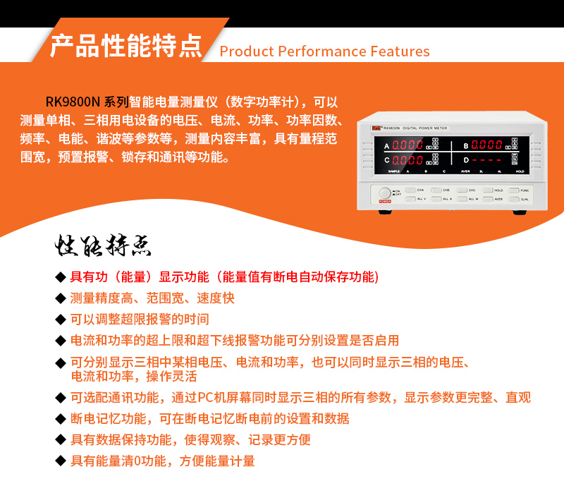 Merrick RK9800 power meter three-phase intelligent electricity measuring instrument current and electrical parameter measuring instrument RK9830N