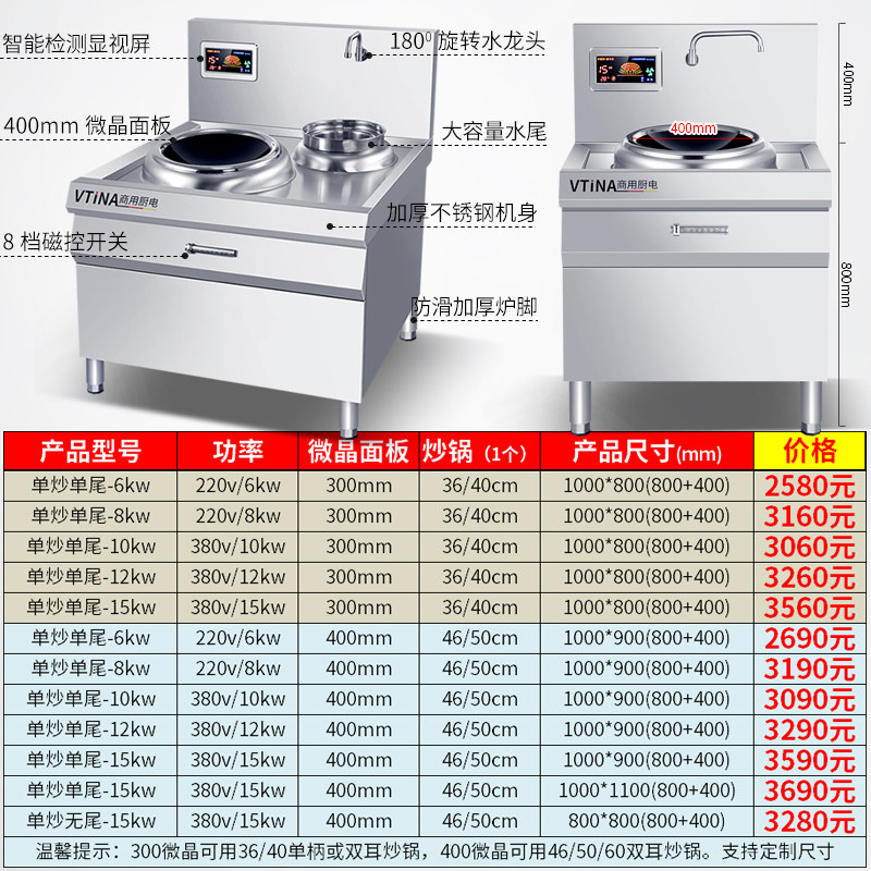 Commercial induction cooker concave surface high-power hotel restaurant kitchen equipment electric frying stove single head induction cooker 15KW stove table