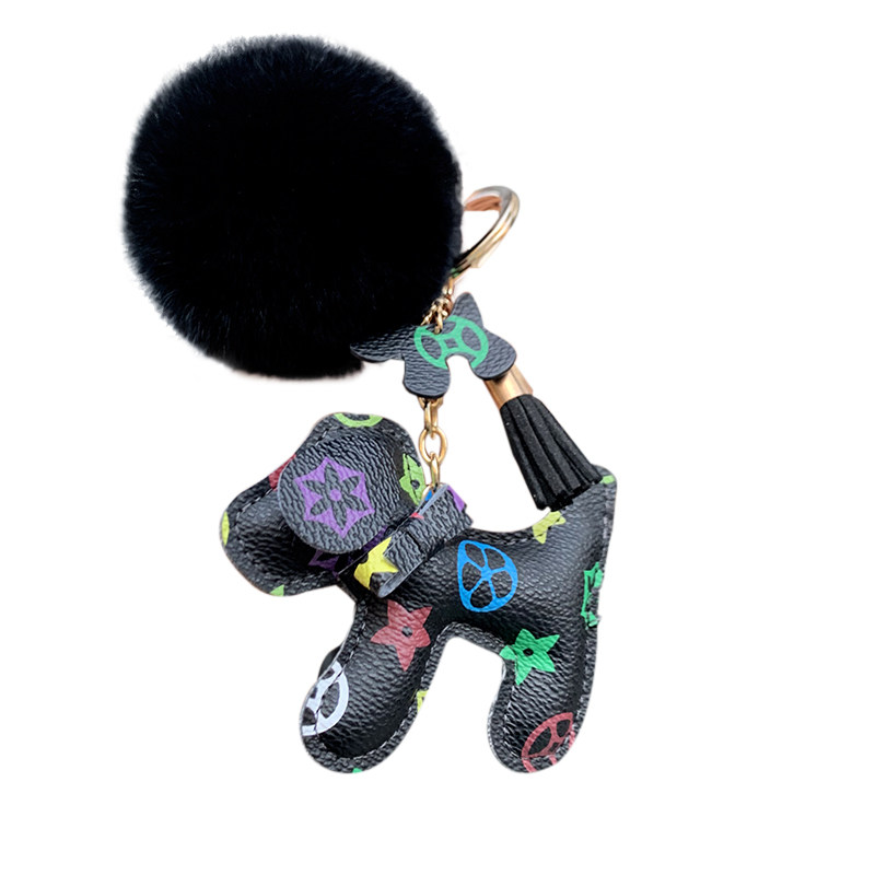 High-end Cortex Key Button Female Creative Puppy Car Key Chain European And European Personality Couple Key Bag Pendant
