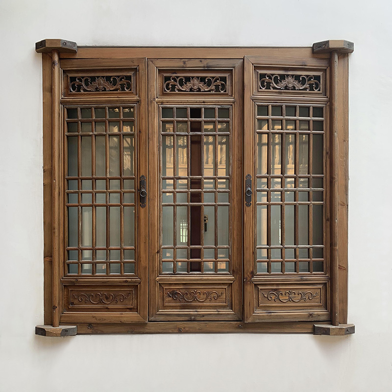 East Yang Wooden Sculptures Antique Doors And Windows New Chinese Solid Wood Hollowed-out Flowers Lattice Hyun Guan Partition Screen Background Wall Manufacturer Direct Sales