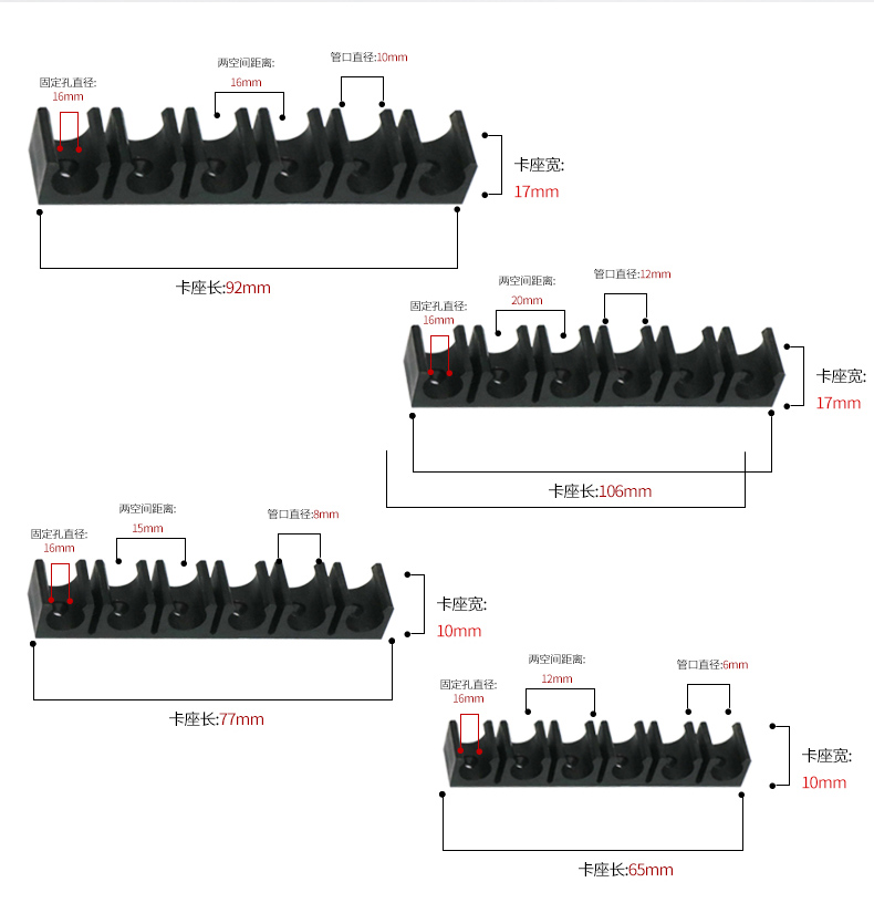 Fixed buckle 6 8 multi-tube U10 tracheal clamp pipe card type card holder PVC card holder row groove pipe bracket 12MMPU