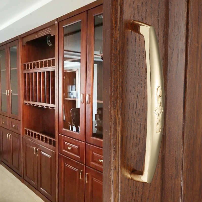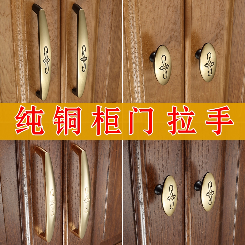 Modern minimalist total copper handle Chinese imitation antique overall cabinet drawers wardrobe door handle gold pure copper single-hole hardware