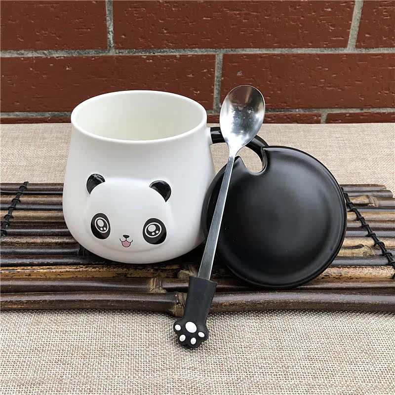 Creative panda expression embossed water cup ceramic mug coffee cup with lid spoon couple cup for boyfriend and girlfriend