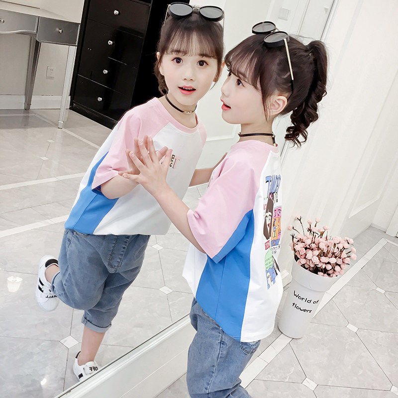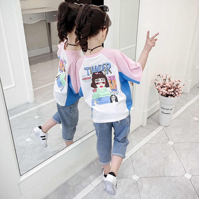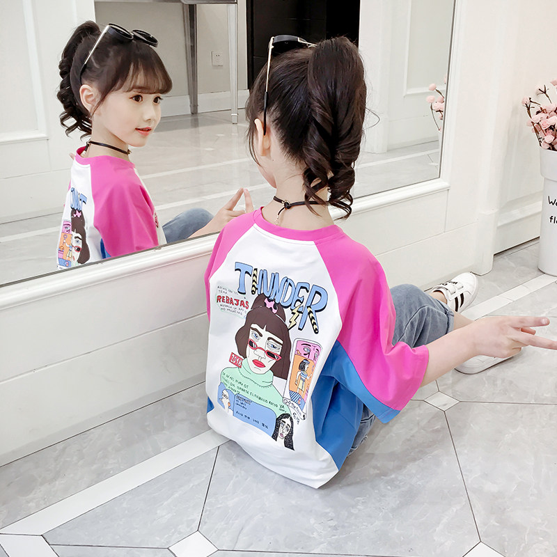 Girl Pure Cotton T-shirt 2022 New Summer Dress Cartoon Printed Blouse Girl Child Short Sleeve T-shirt Tide