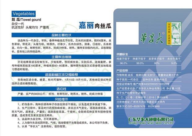 South China Agricultural University, Jiali meat loofah loofah seeds flower point thick meat disease resistance, high yield, good taste