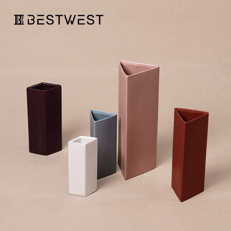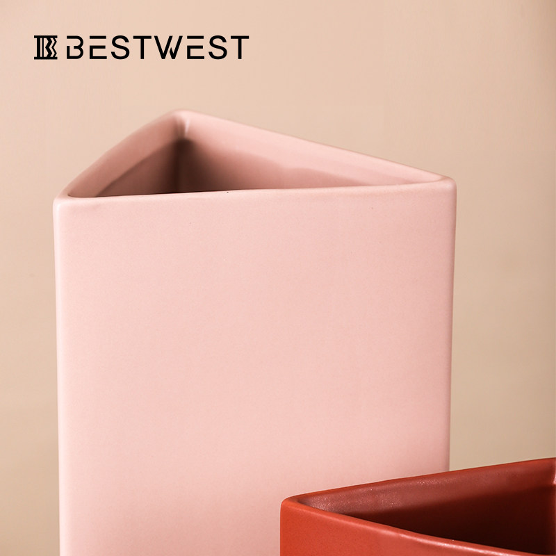 BEST WEST TRIANGULAR CERAMIC Vase DECORATION Morandi color DRIED flower flower arrangement bottle Nordic living ROOM ORNAMENT