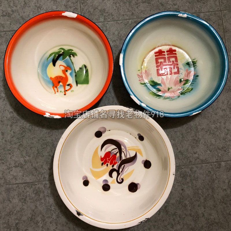 Old fashioned enamel washbasin nostalgic goods decoration props 708090 years Antiques old objects swing pieces Vegetable Noodle basins