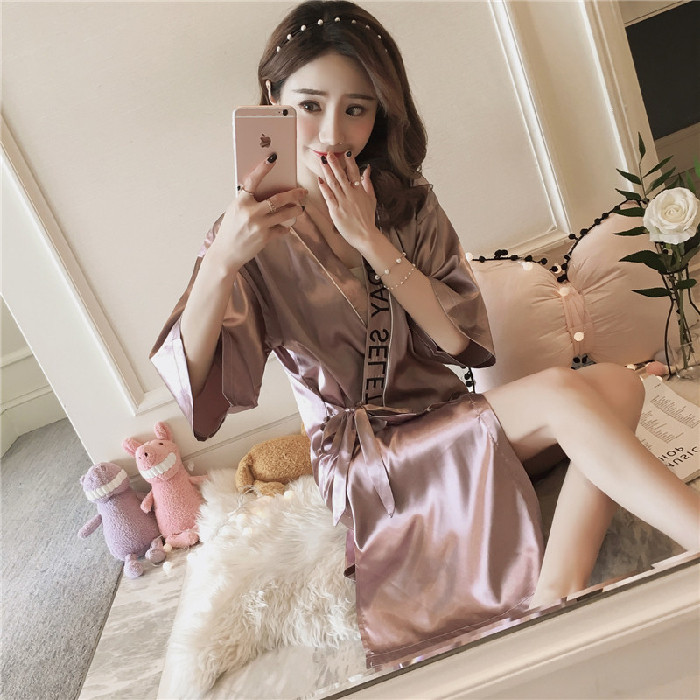 Pajamas women's spring and autumn ice silk long nightgown sexy bathrobe summer nightdress thin section home service Japanese kimono