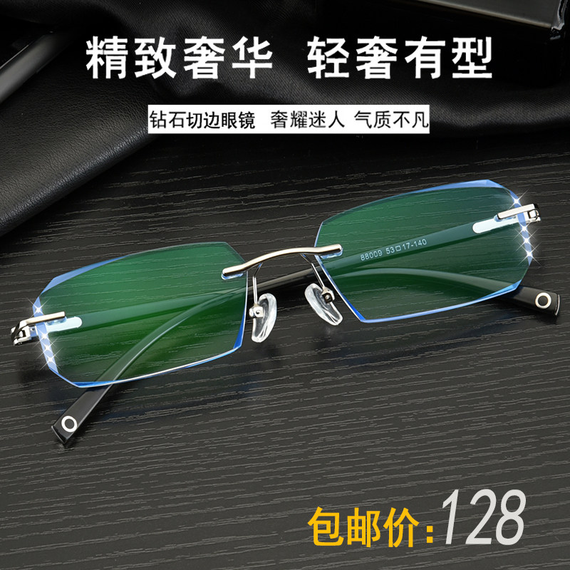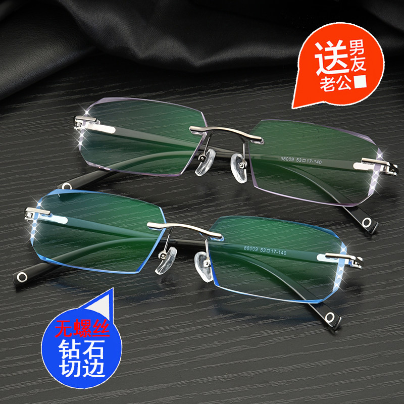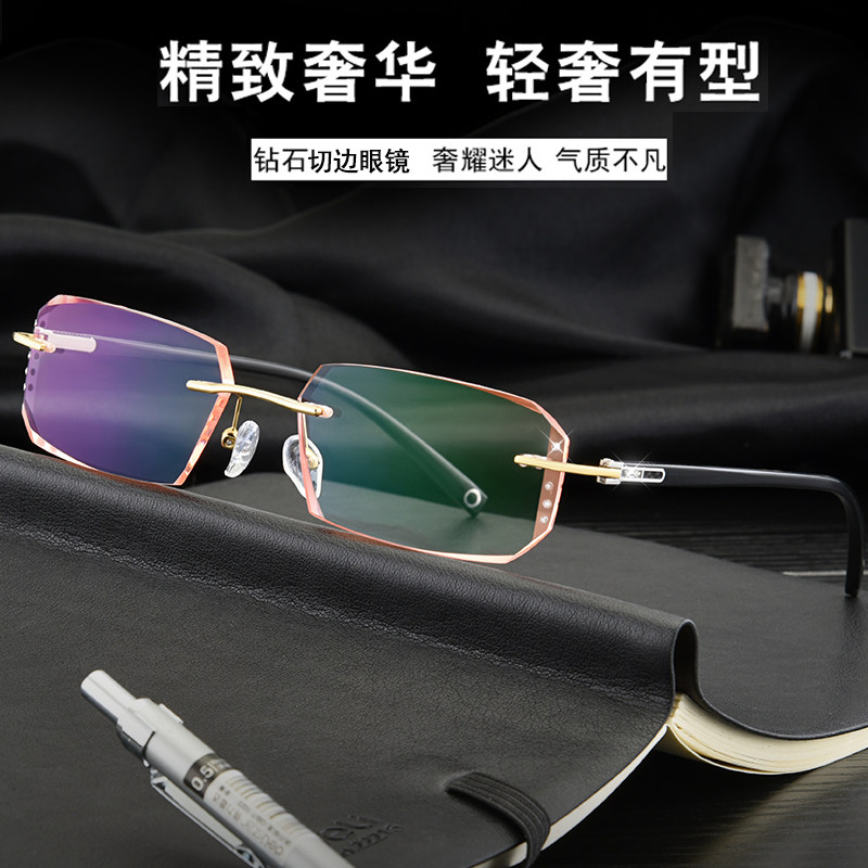Matching Finished Nearsightedness Spectacle Frame Male Tr Big Face No frame diamond cut edge No screw Changed Color Mirror eye frame Men 's