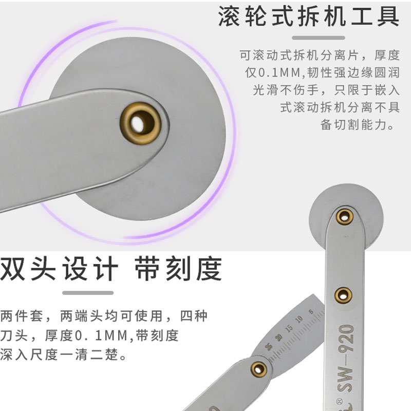 Rolling wheel disassembly tool set of 2 roller-wheel unloader tools with the same section 2 curved unloader tools a set of 2
