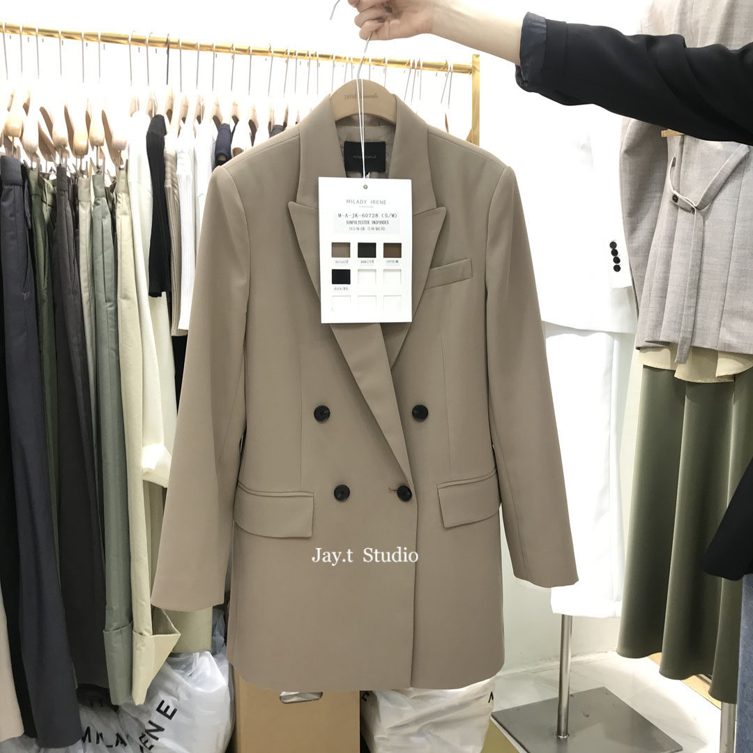 South Korea milady 2022 spring and autumn temperament classic double-breasted suit jacket mid-length suit female 60728