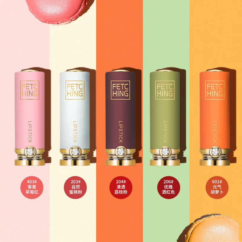 206#优雅酒红色403#害羞草莓红601#元气胡萝蔔204#清透荔枝粉钻石焕彩雾面丝绒口红(five clothing) 203#自然蜜桃粉 a total of 203#自然蜜桃粉 s.