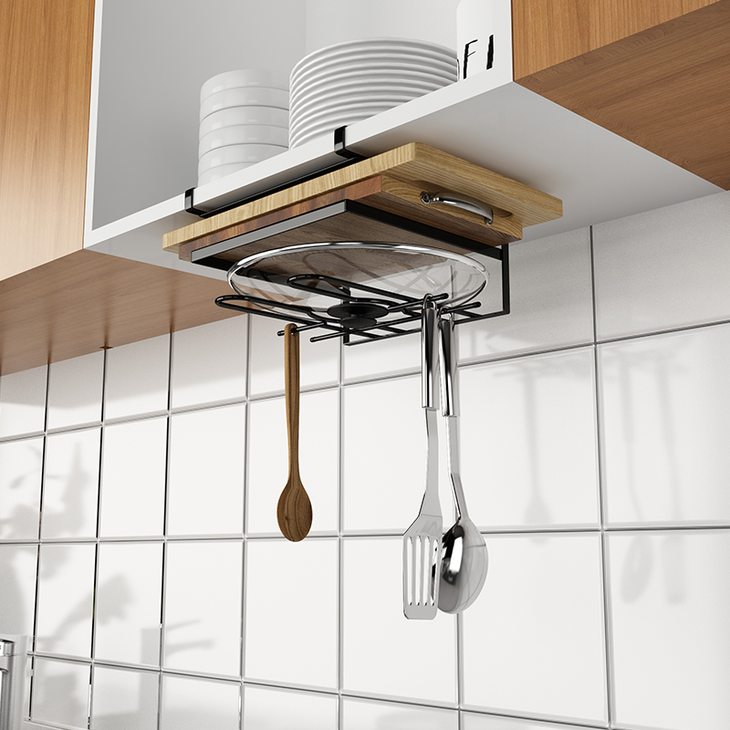 Multi-function pot lid and cutting board rack (single) Black multi-function pot lid and cutting board rack (single) Medium cutting board rack (single) Black medium cutting board rack (single) Integral cabinet hook (single)