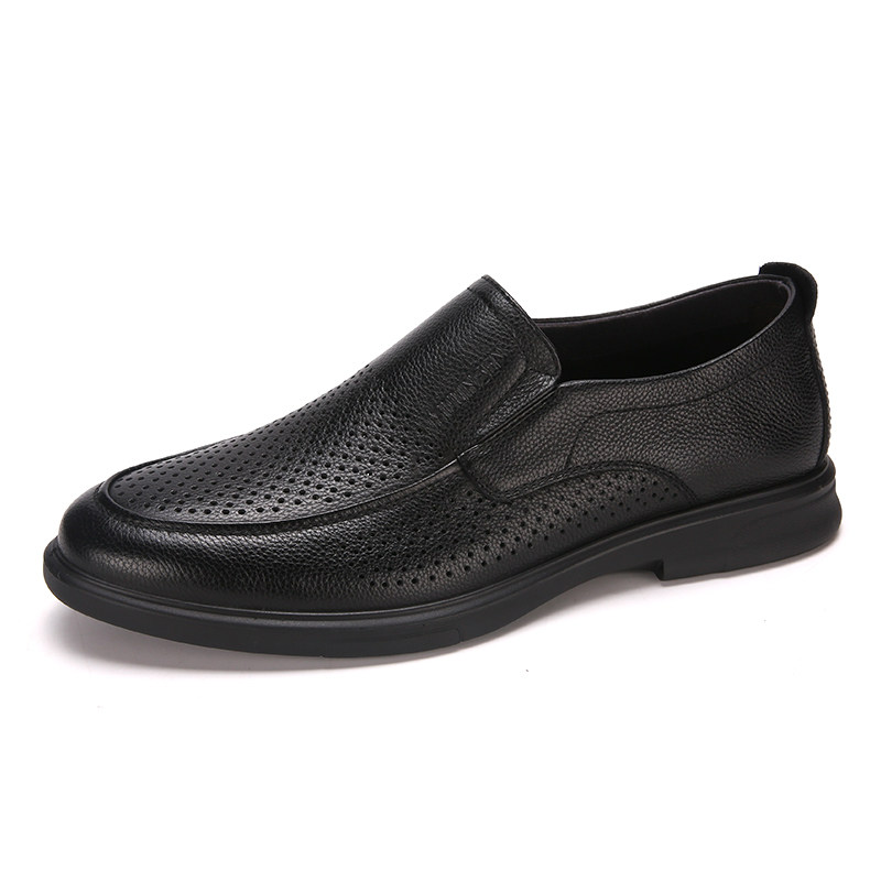 Wood Linson Men Shoes Summer Business Casual Shoes Breathable Hollowed-out Leather Shoes Men Genuine Leather Soft Bottom Men's Foot Dad Shoes