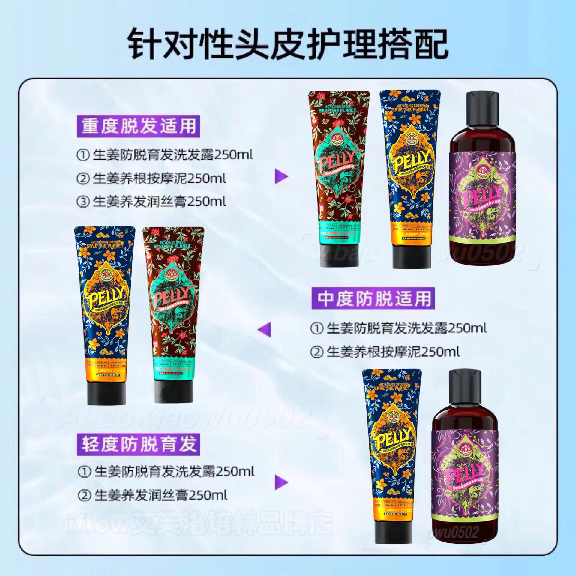 Ginger shampoo 250ml (refreshing oil control) ginger massage mud 250ml (dredging hair follicles) ginger conditioner 250ml (soft and moisturizing) ginger shampoo conditioner (slightly