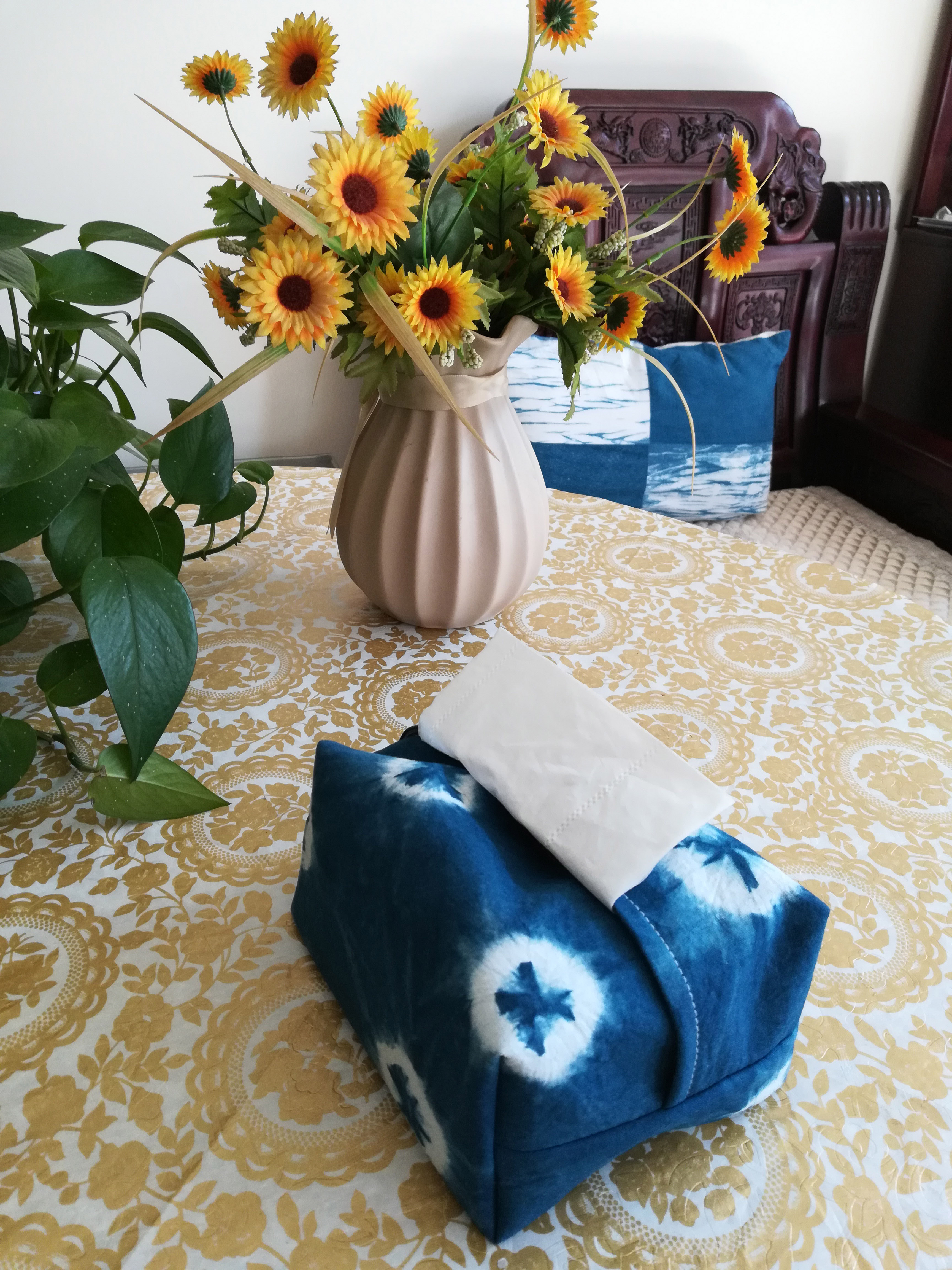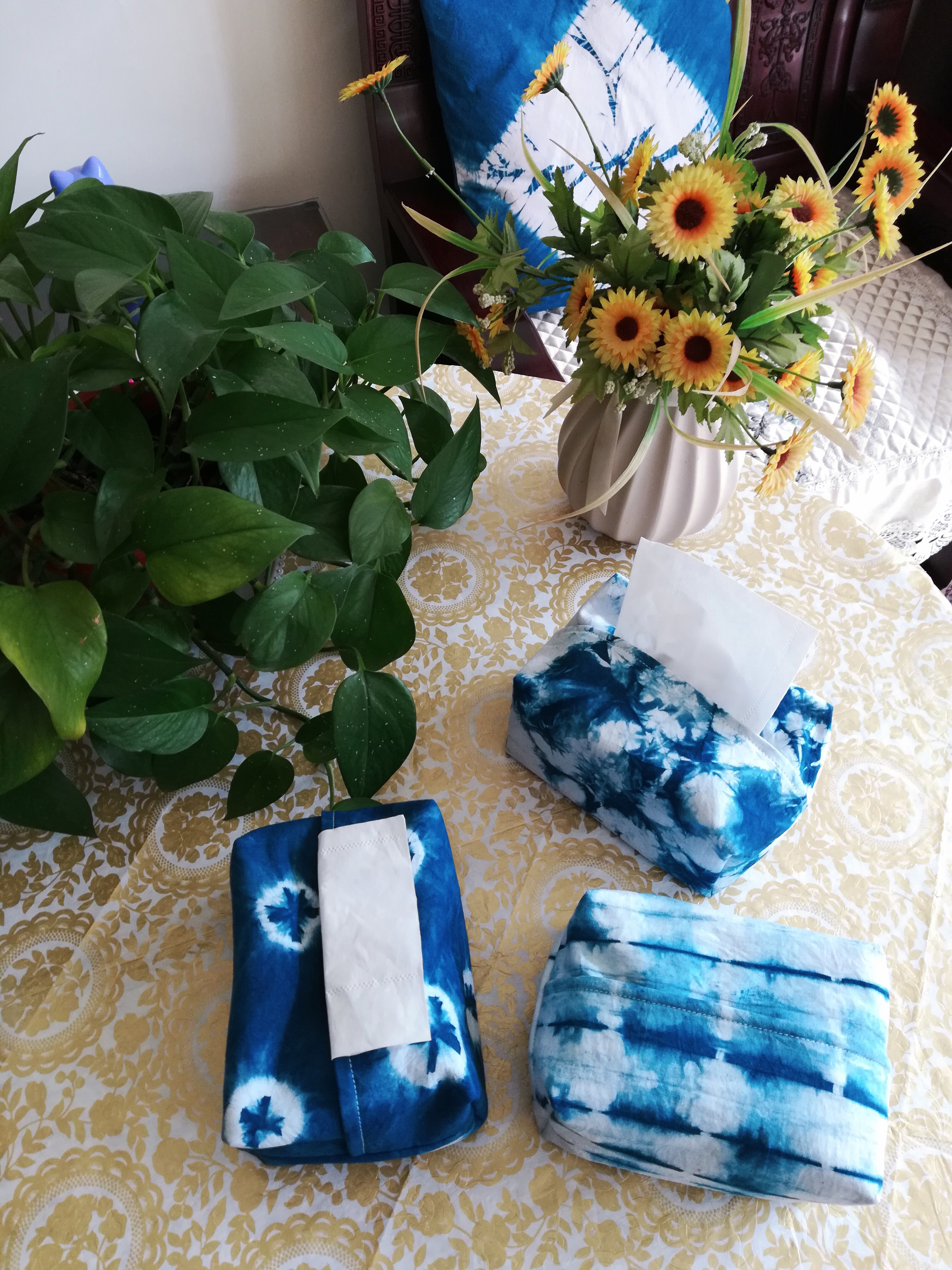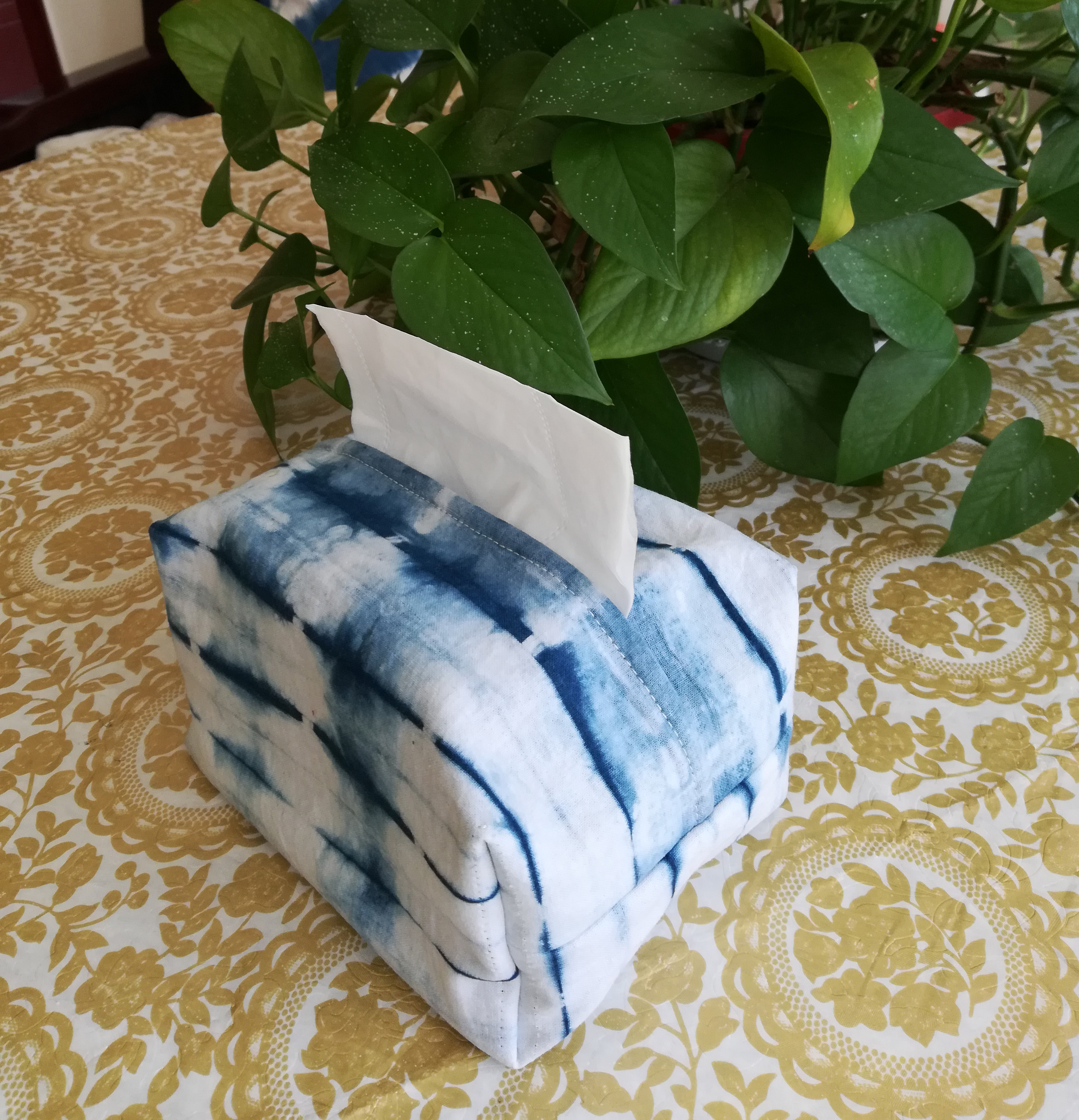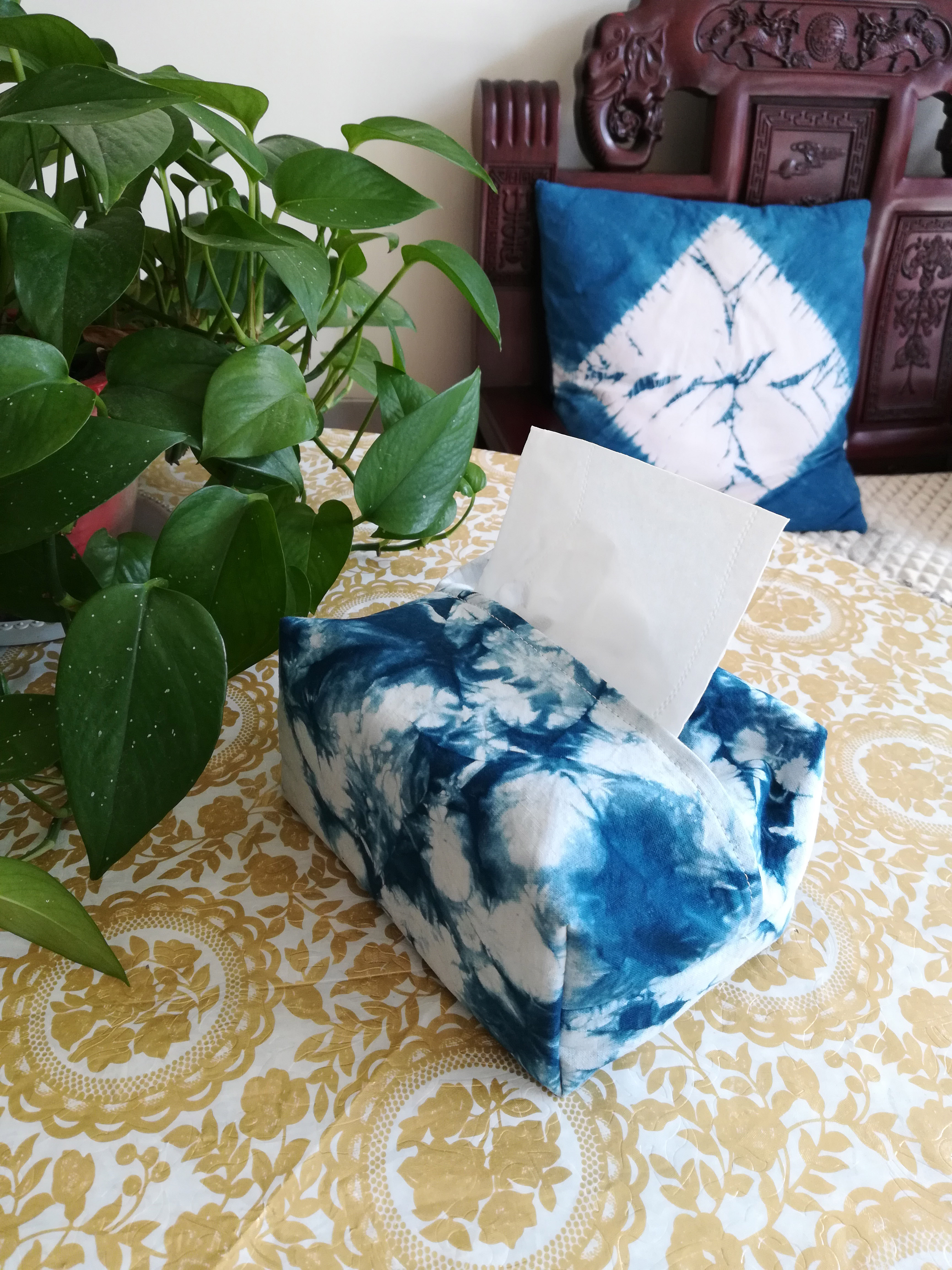 Original hand-designed tie-dyed tissue box Pure cotton plant blue dyed toilet paper box Home fabric storage tissue cover