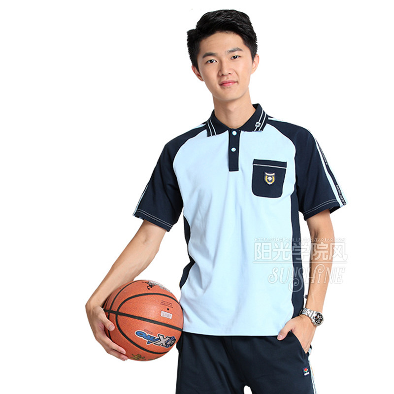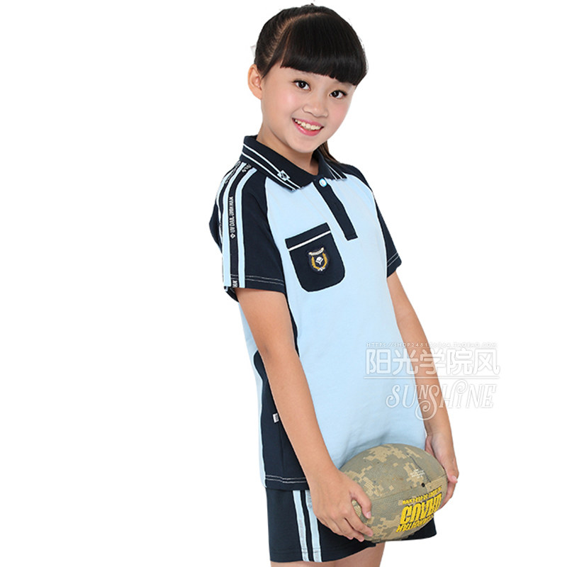 Nanning student school uniform middle school primary school junior high school summer short-sleeved shorts trousers sportswear suit sky blue