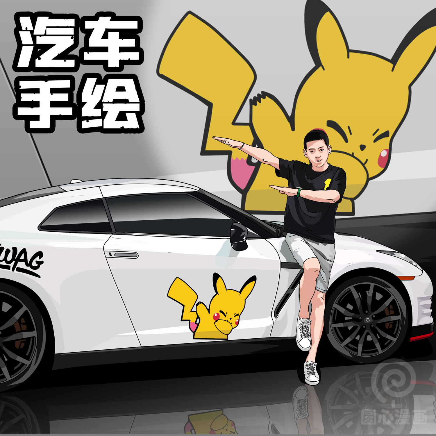 Car illustrator design comic handpainted head portrait live-action q version phone protection shell custom sports car racing retrofit cartoons