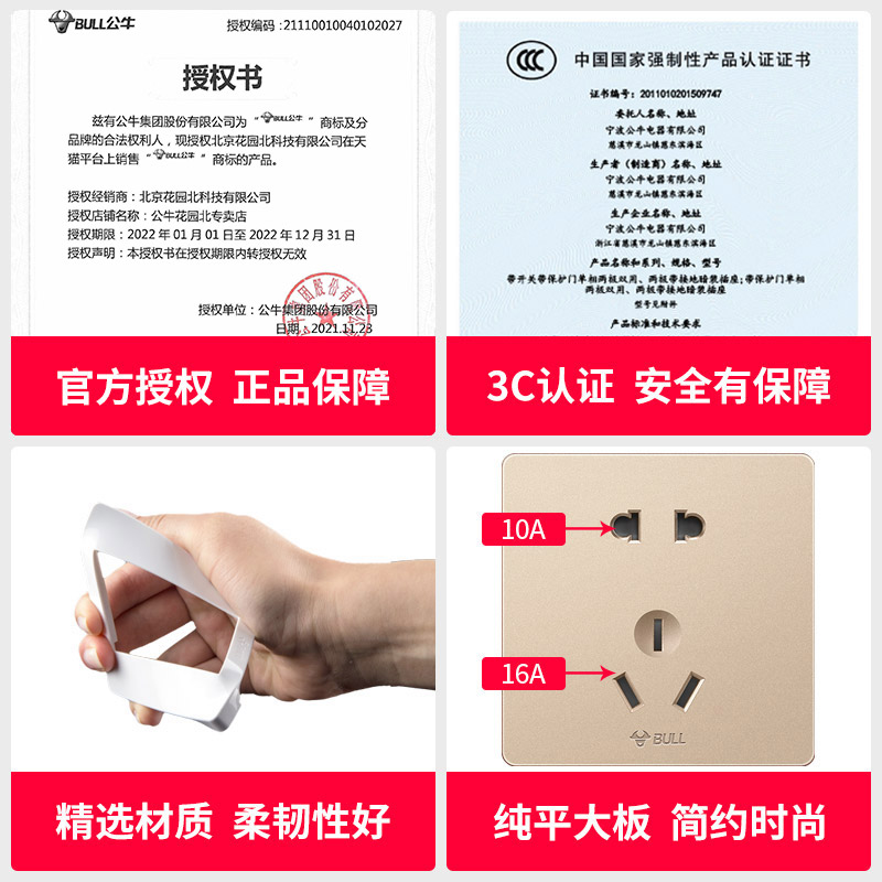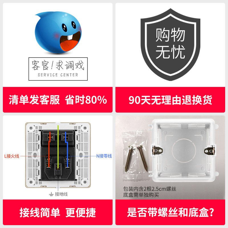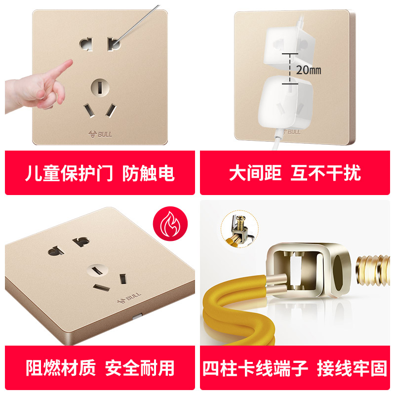 Bull air conditioner socket electric water heater special 5 holes 16A high power five holes panel concealed household 16a three holes