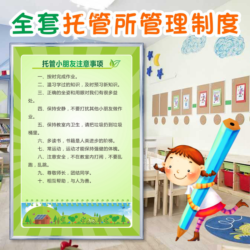 A full set of custodian class management system card counseling training center management system card Custodian takeover system Wall sticker decorative painting Custom school class system Teacher code Health and safety