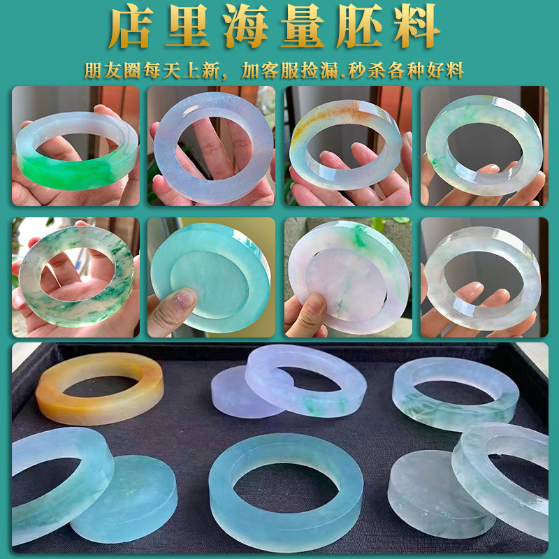 Natural Burmese Jadeite Bracelet Rough Stone Ice Jade Wool Semi-Ming Material Laokeng Piaohuayang Green Custom A Goods