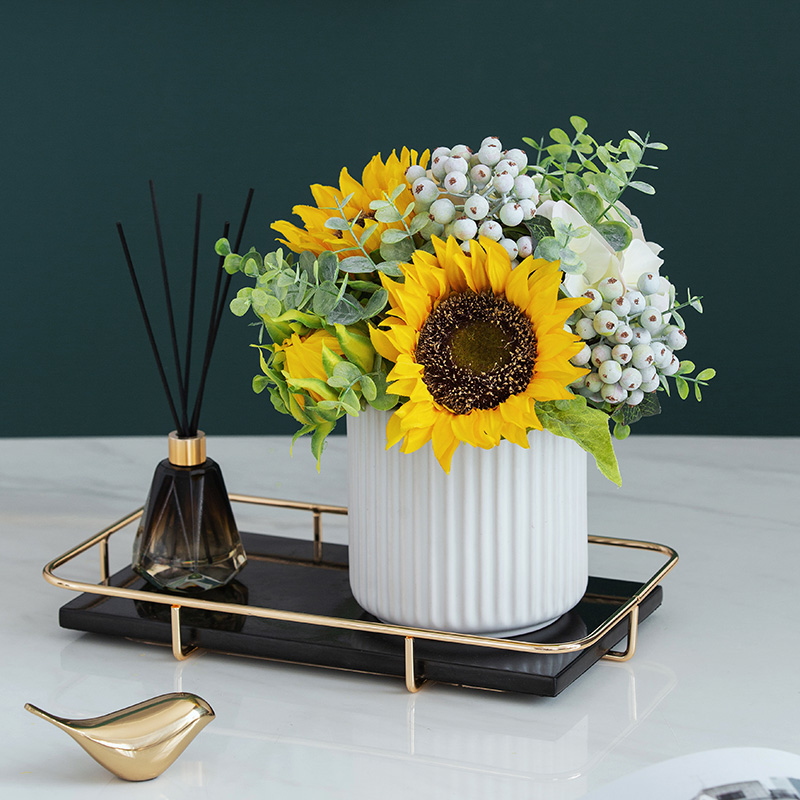 Harvest Lodge Nordic Style Sunflower Simulation Flowers Fake Flowers Livingroom Flower Flower Vase Flower Art Vase Swing Piece Home Decoration Pint