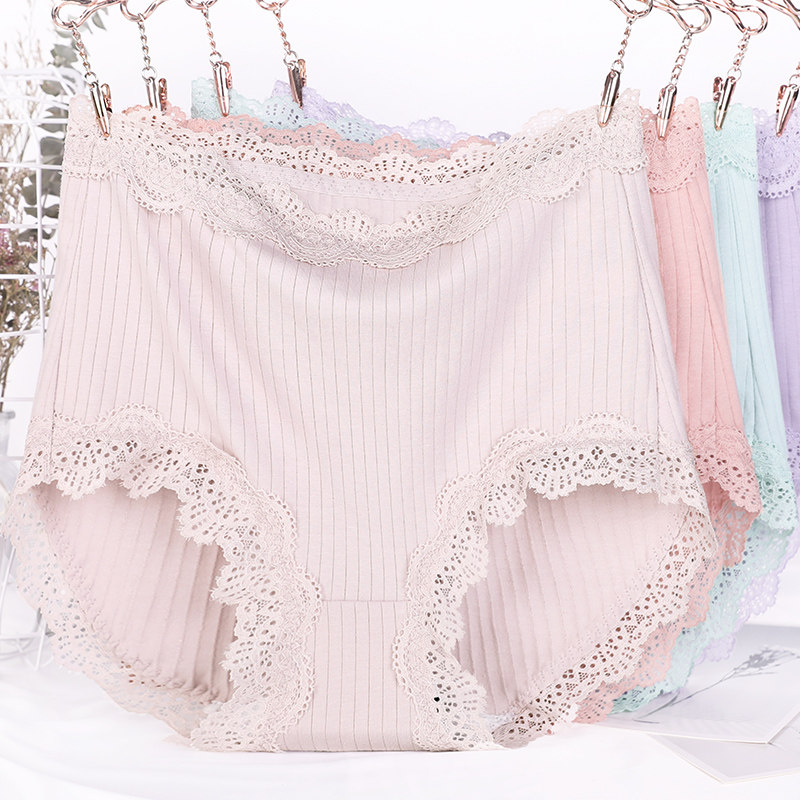 Ladies large underwear girl 200 pounds of fat cotton girl high waist lace shorts summer thin wear
