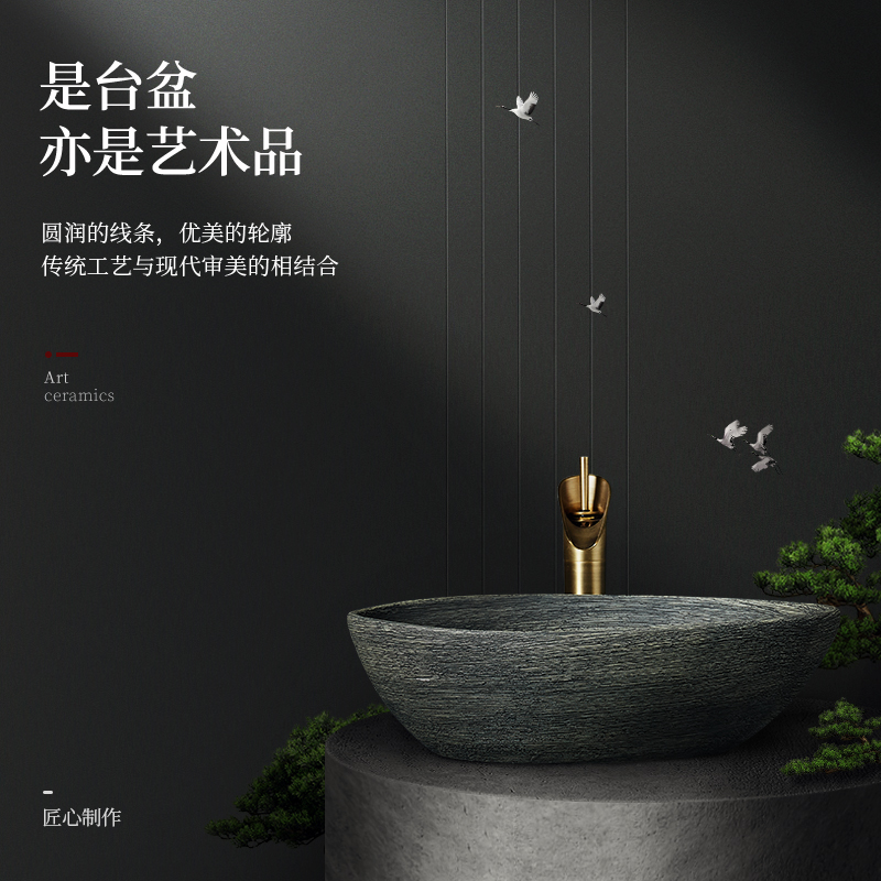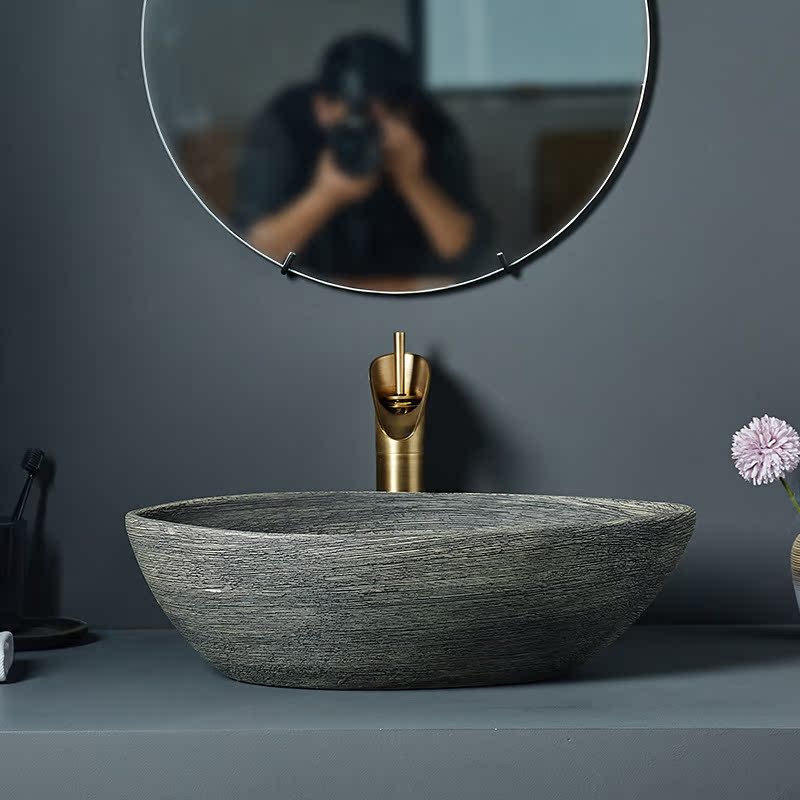 Channel Creative Ceramic Terrace Basin Art Retro Wash Basin Single Sink Individuality Wash Basin Imitation of the washbasin on the antique table