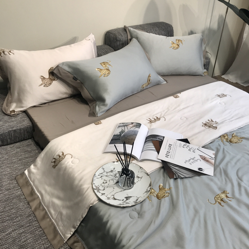 80 Lana fine natural silk summer is air conditioned by four sets of double-sided naked sleeping summer cool by silk Slip satin leopard can be washed by machine