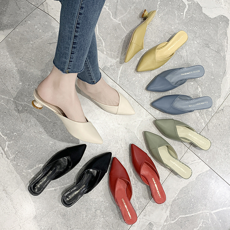 Slippers women Summer outwear 2022 Chauts net red pointed Baotou lazy people Half slippers Han version 100 hitch heel Mueller shoes