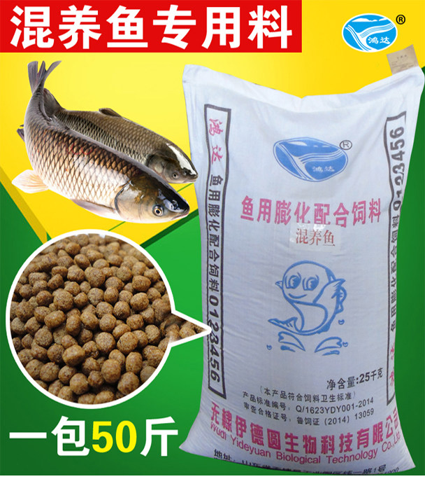 Grass carp carp silver carp black carp mixed fish feed 50 catties bag puffed floating material mixed feed mixed fish feed