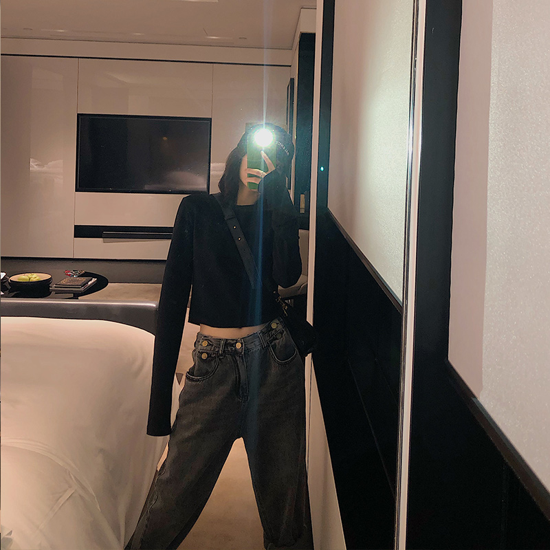 White long sleeve t shirt short menu 2022 new cotton blouse in the shirt high waist coat spring and autumn