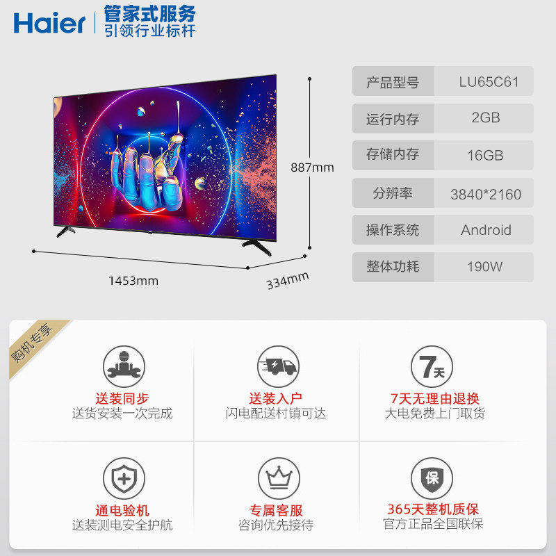 Haier Haier LU65C61 65-inch Full Screen Intelligent Internet Ultra High Qing 4K LCD TV