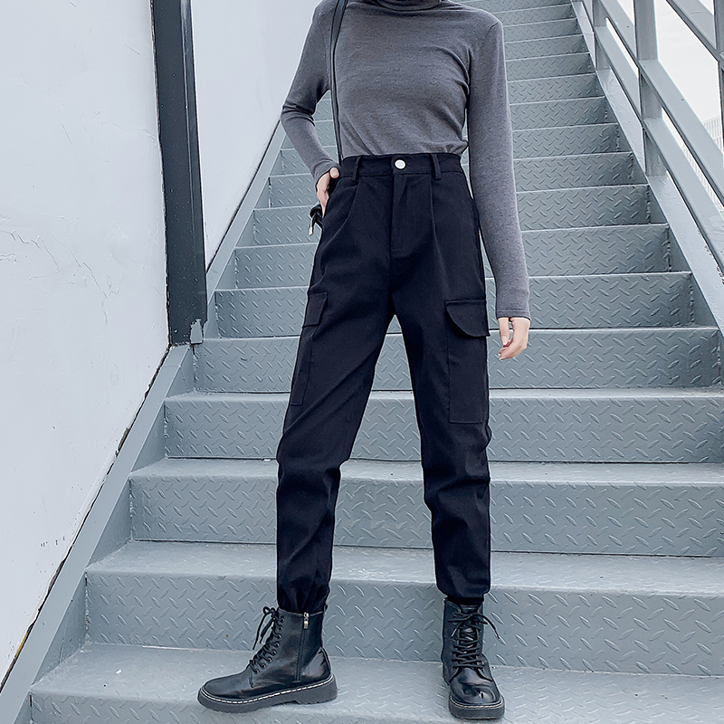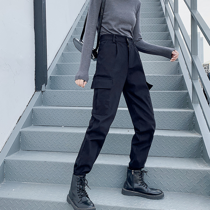 Cool and handsome ins pants, women's overalls, slim, high-waisted, loose, straight-leg sports, Hong Kong style, leggings, all-match casual pants