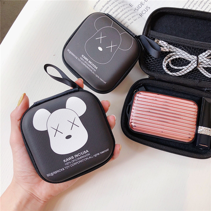 Wired headset storage bag box Mini cute data cable mobile phone charger cartoon multi-function finishing box female