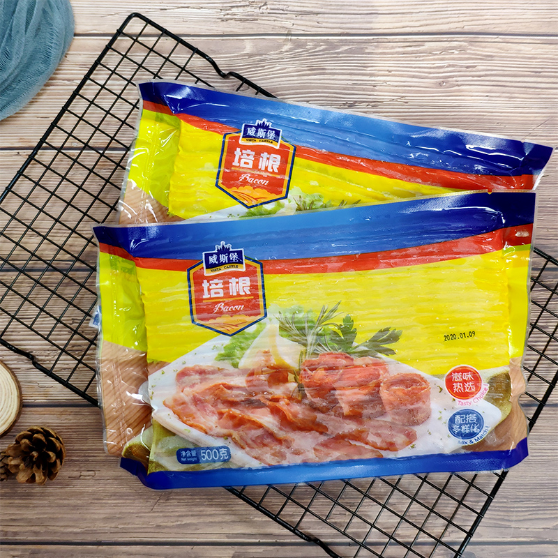 Five Flowers Flesh Pure Meat Bacon Meat Slices 500g Commercial Barbecue Baking Bacon bacon Pizza Scallion Pizza for breakfast Smog