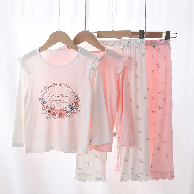 Girls Modal Underwear set Ultra-thin Children's long-sleeved loungewear Girls Pajamas Baby Autumn Clothes Sanitary pants thin section