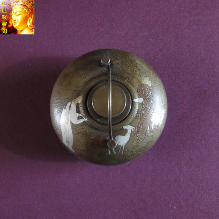 Sheng Shizu Poly Treasure Cabinet Pure Handmade Retro Pure Bronze Soup With Warm Feet Jug Warm Hand Stove with a silver engraved floral nostalgic collection