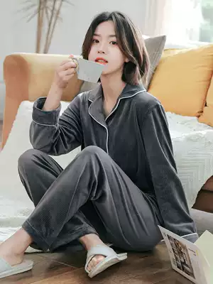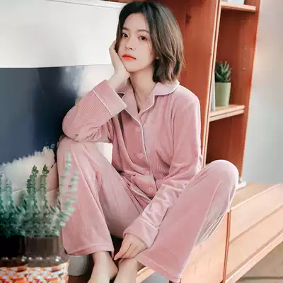 Autumn and winter coral velvet pajamas women thick large size long sleeves warm island velvet home clothing set can be worn outside spring and autumn