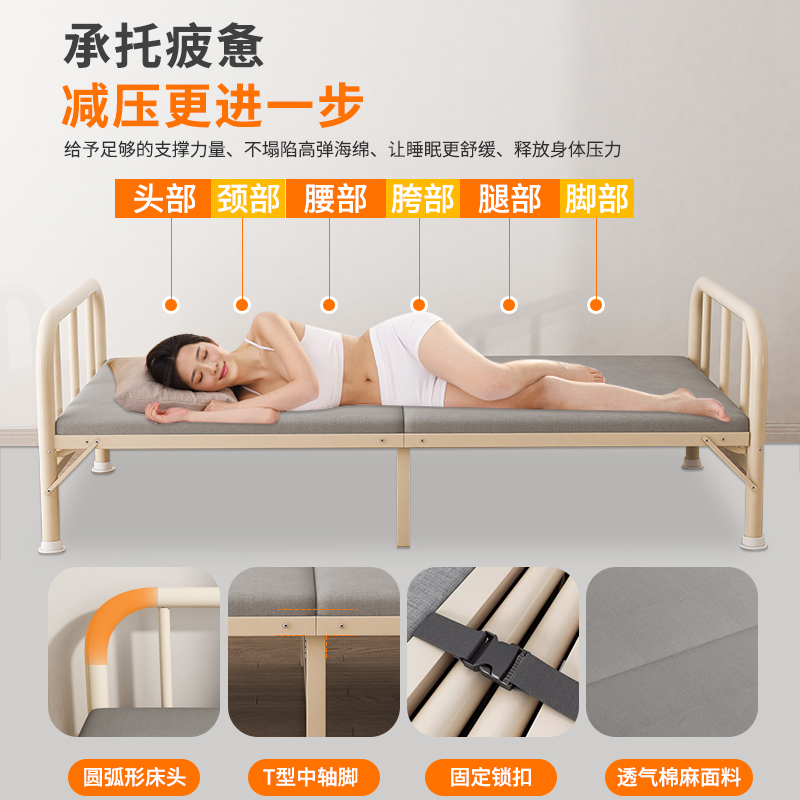 Folding Bed Single Bed Single Bed Adult Simple Escort Bed Iron Bed Office Lunch Break Hard Board Rental House Breathable Bunk Bed-Taobao