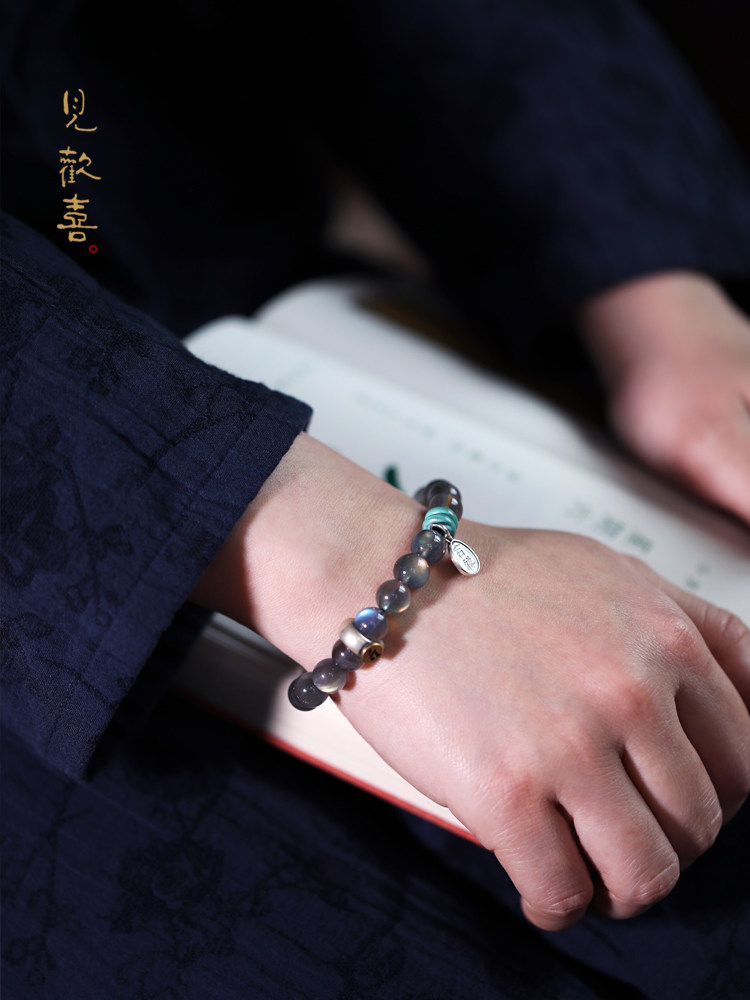See Joy (Moonlight) Grey Moon Light Stone Bracelet Duozodiac Patron Saint God Ancient Wind Small Crowddesigner Handchain Woman