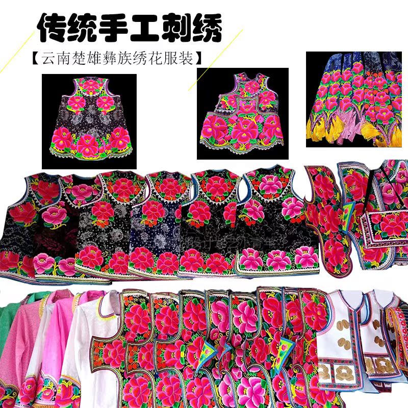 Handmade traditional Yi embroidery embroidered clothes Yunnan National clothing left foot dance suit Torch Festival suit new
