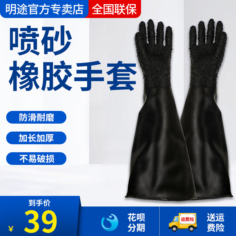 Sandblasting machine gloves thickened extended belt particles durable left and right hand single sell sandblasting machine special wear-resistant rubber gloves
