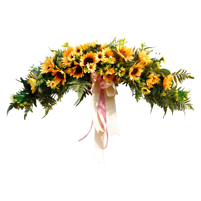 Wedding simulation sunflower wreath half ring irregular fake flower hanging decoration door decoration garland lintel decoration wedding room home