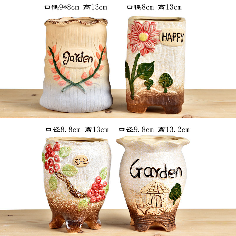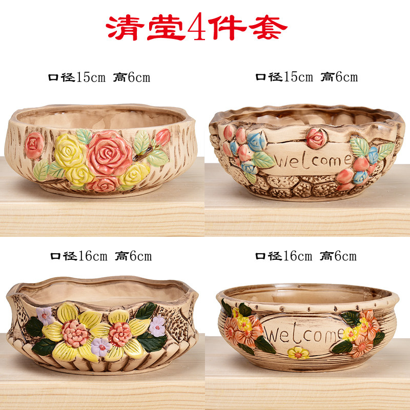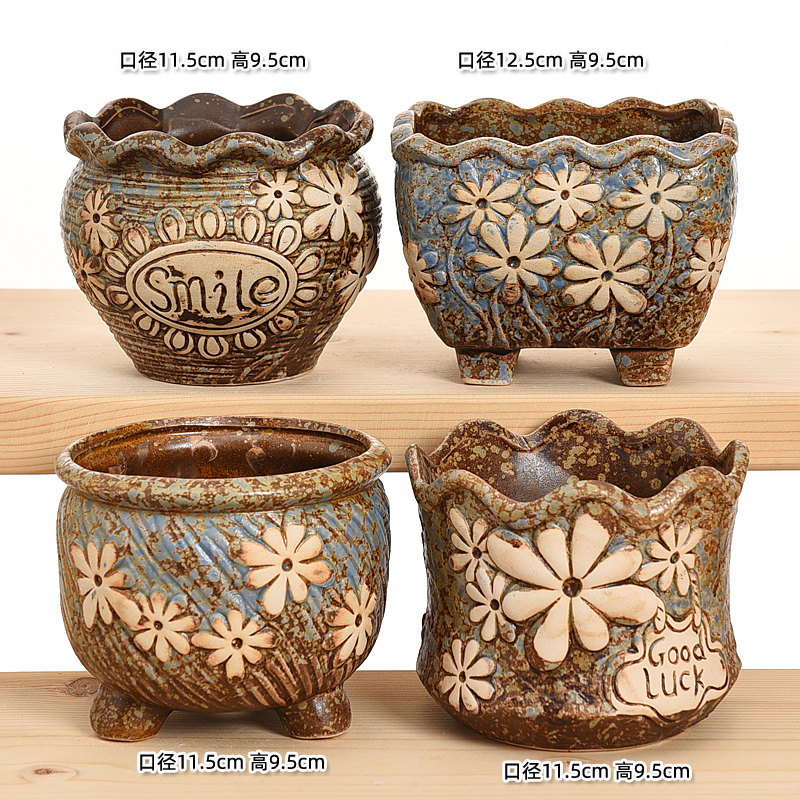 China Wind Meat Large Number of Multi-Meat Flower Basin Old Village Pots Pottery Jar Ceramics Retro Laozhuang Master Coarse Pottery Creativity