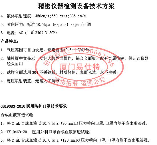 Mask synthetic blood penetrating tester melt spray cloth detection equipment anti-barrier non-woven penetration testing machine